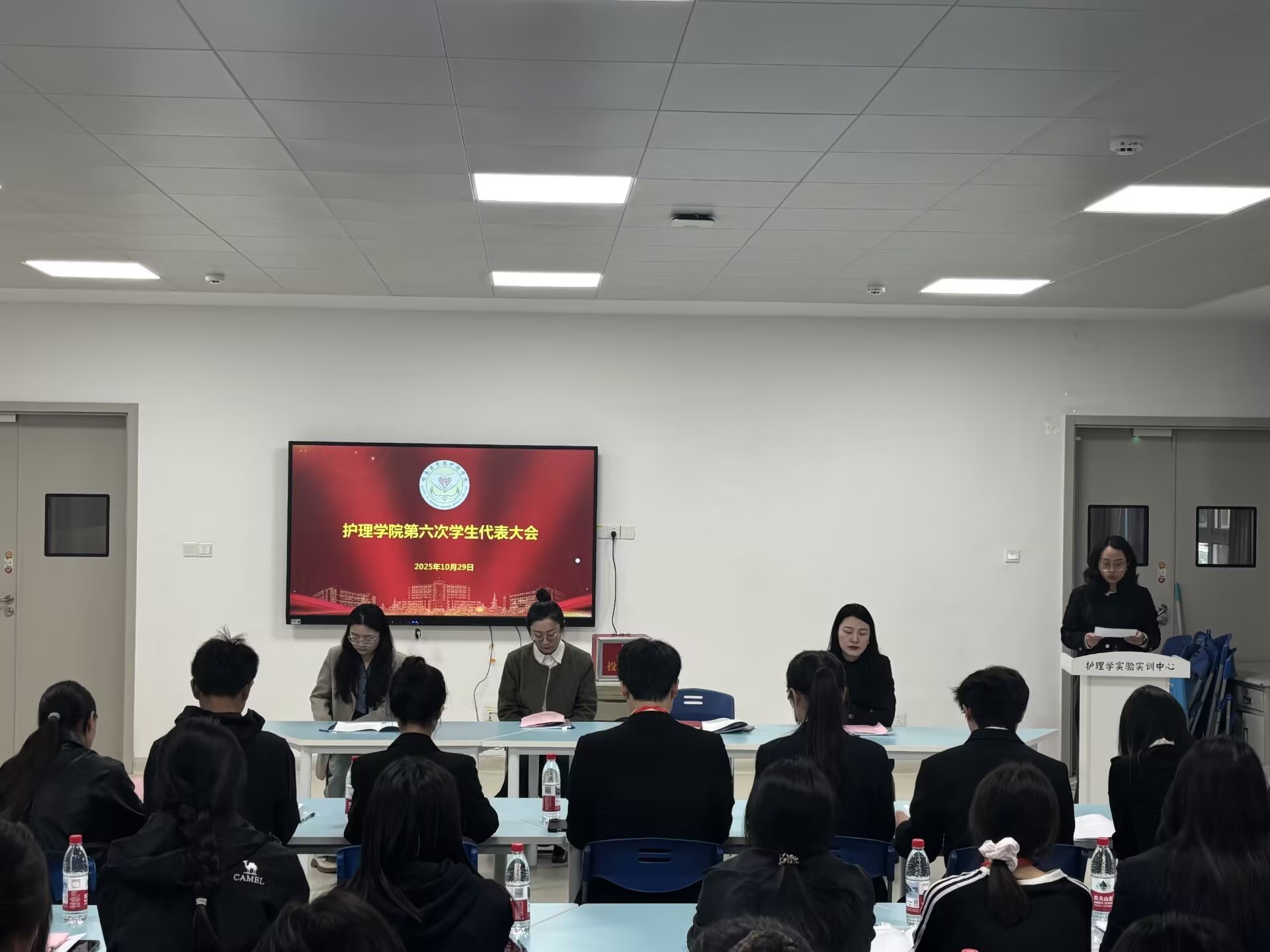 10月29日下午,护理学院第六次学生代表大会在学院一楼会议室隆重举行。学院党委副书记王亚娟、团委书记范绮慧、团委副书记陶灿、2022级本科生团总支书记史敏和52名学生代表参加会议。