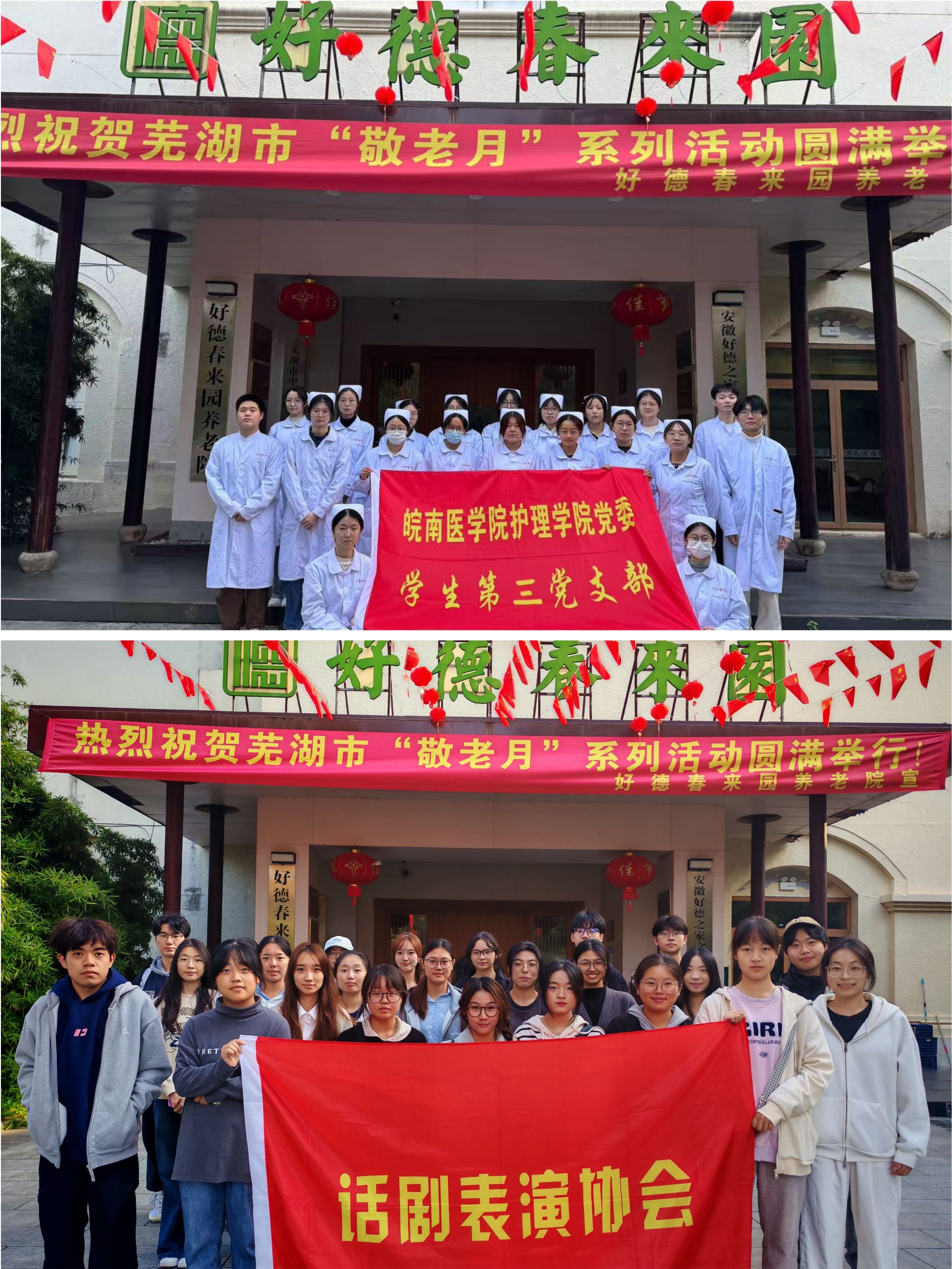 菊黄枫红,又逢重阳。在重阳节到来之际,11月2日,护理学院党委学生第三支部联合话剧表演协会,走进好德春来园养老院开展“情暖金秋、爱满重阳”主题志愿服务活动,以专业服务和青春活力传递敬老爱老之情。