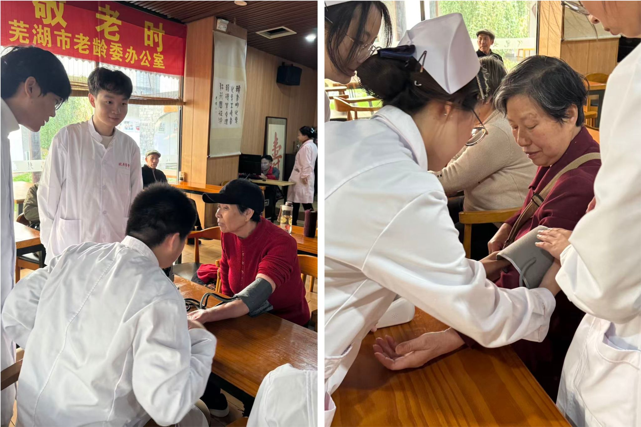 在健康义诊区,“爷爷,您的血糖有点高,平时要注意低糖饮食啊!”志愿者一边仔细测量数据,一边细致讲解日常健康注意事项,用专业服务呵护长者安康。生活照料小组则主动帮助老人们整理内务、陪伴散步聊天,并与老人开展棋牌书画互动,通过点滴行动关怀老人的生活起居,送去温暖的亲情陪伴。