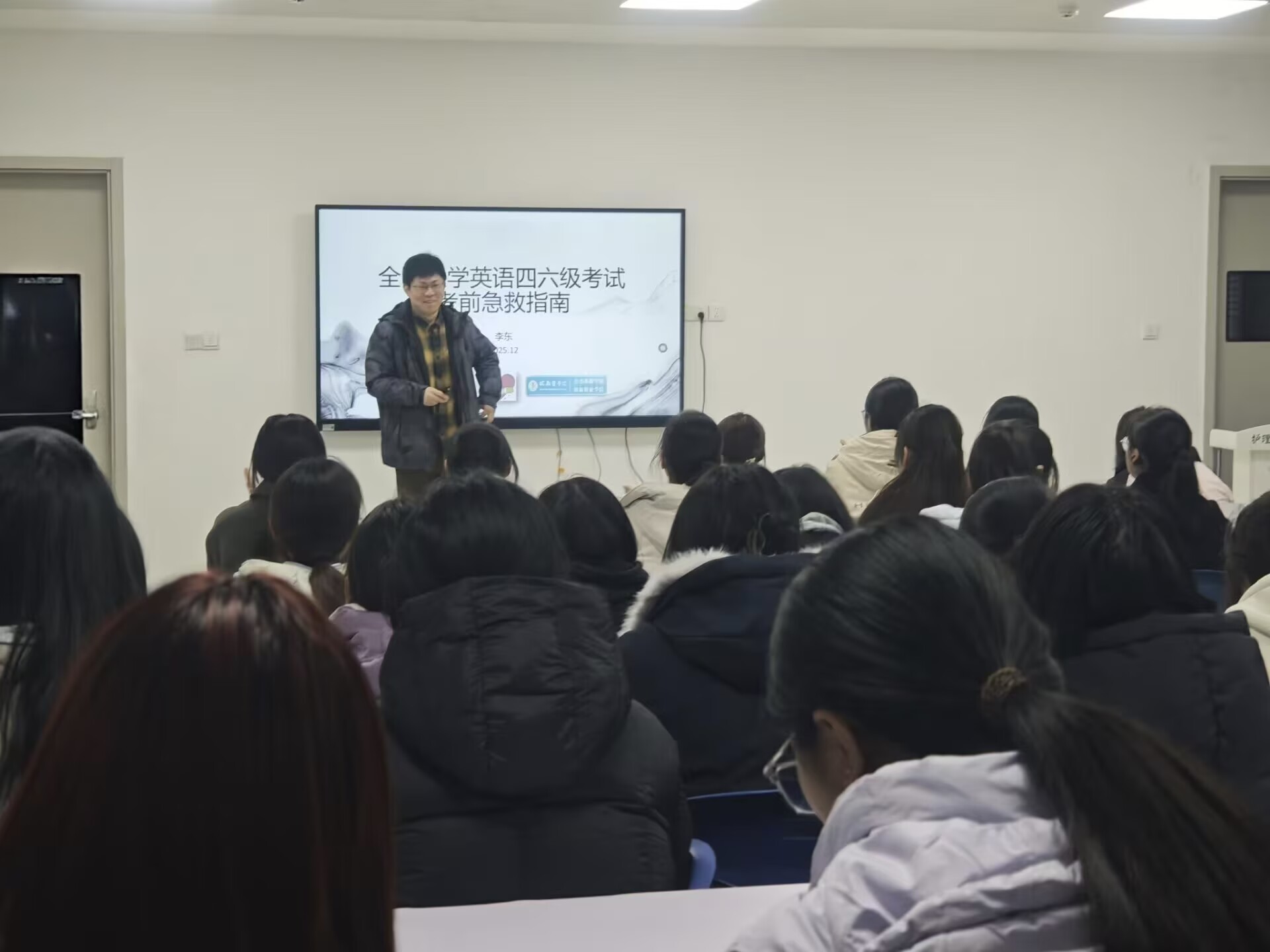 李东老师凭借丰富的教学经验,系统梳理了四六级考试的命题规律与备考策略。他结合最新考试动态,重点解析了听力部分的关键信息捕捉技巧、阅读题型的速读与精读方法、写作翻译的常见失分点及应对策略。讲解中,李老师通过典型例题现场演示解题思路,并分享了科学的时间分配方法和答题顺序建议。同学们专注听讲、认真记录,在互动环节积极提问,李老师均给予了细致解答。