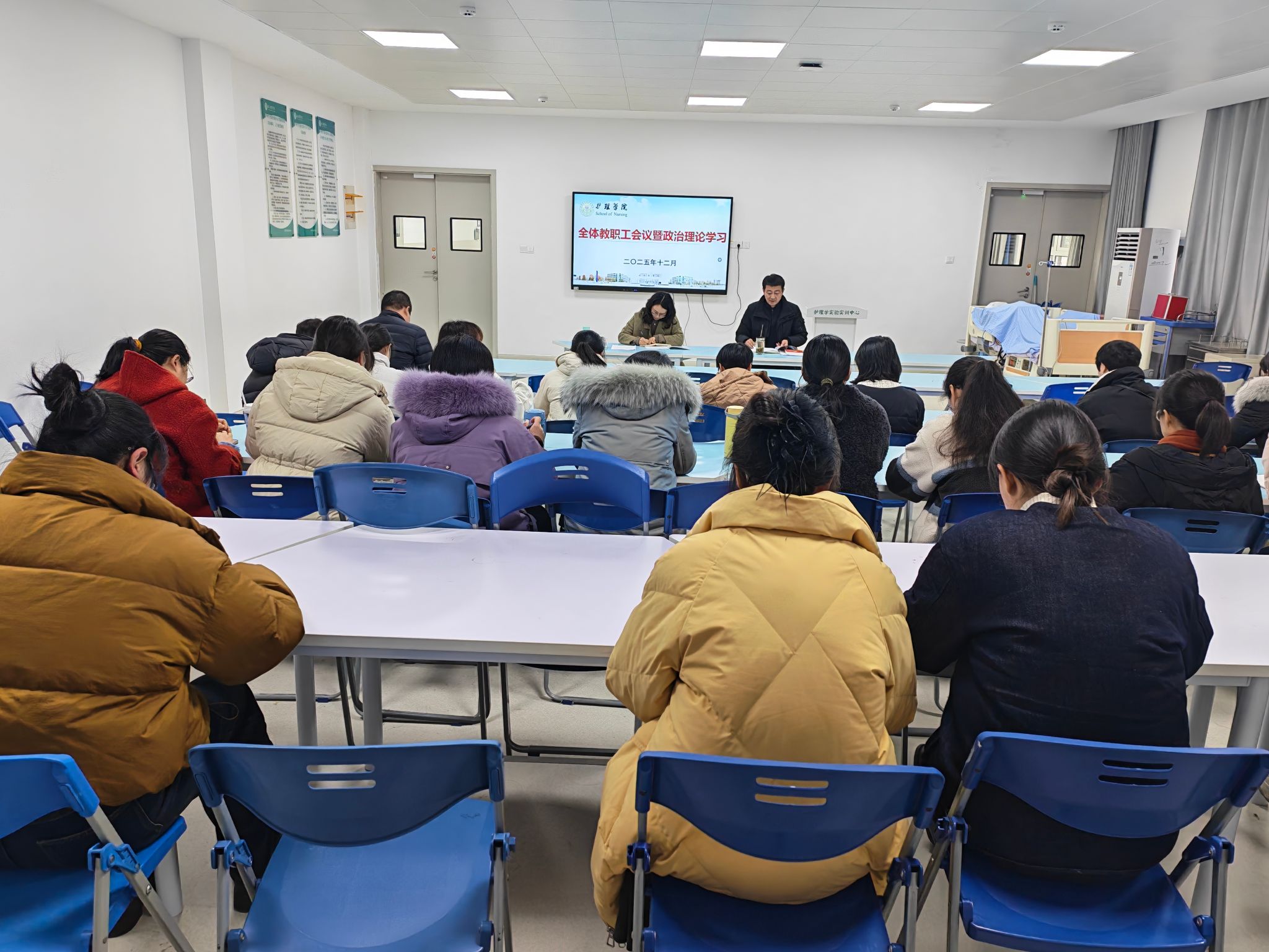 12月31日下午,护理学院在1118智慧教室召开教职工理论学习会。会议由护理学院党委副书记王亚娟主持。