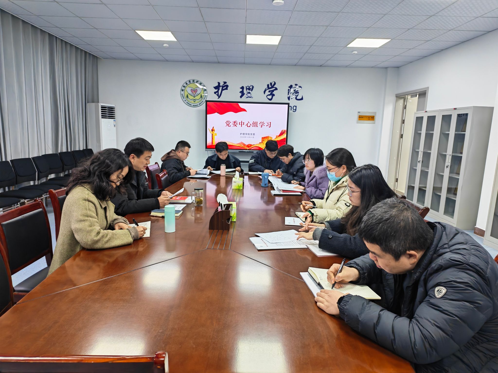 12月31日下午,护理学院召开党委中心组学习扩大会,学院班子成员、党委委员和党支部书记参加会议。会议由护理学院党委书记陈抗震主持。