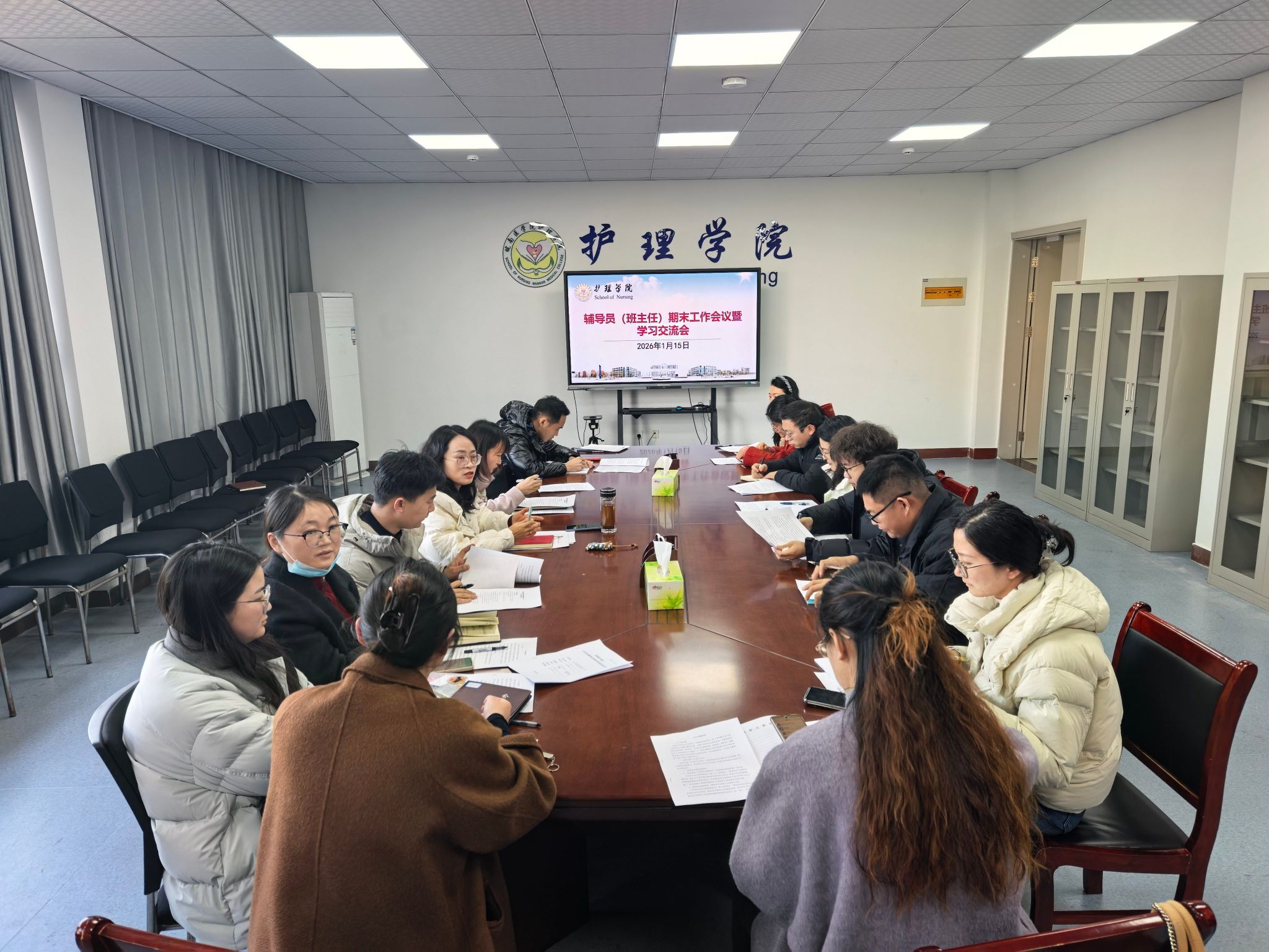 为总结本学期学生工作成效,谋划寒假学生工作重点任务,切实提升辅导员队伍专业素养,1月15日下午,护理学院在学院会议室召开期末学生工作总结交流会,全体辅导员、班主任参会。会议由学院党委副书记王亚娟主持。