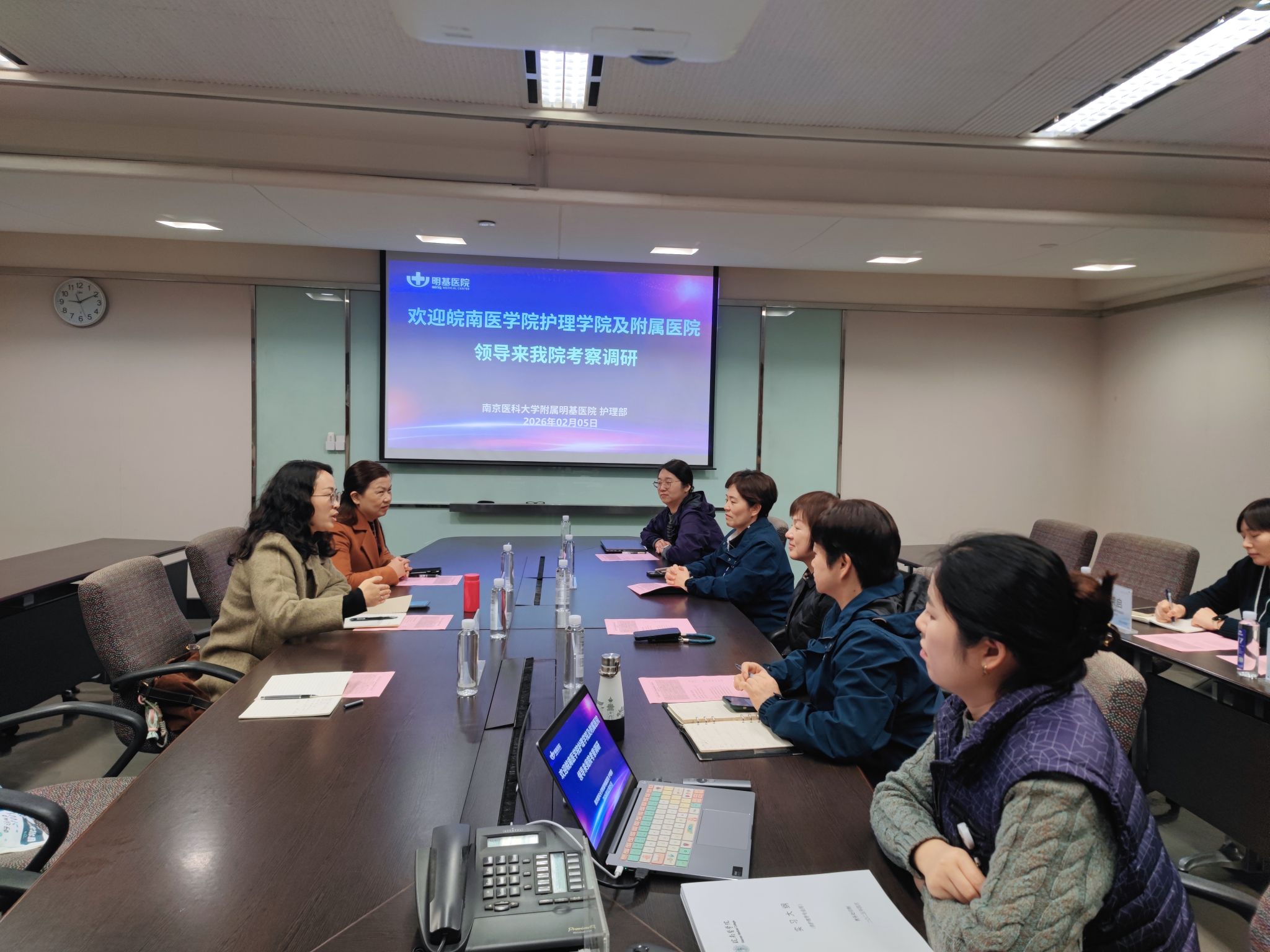 为进一步拓展实习与就业岗位,精准对接人才需求,2月5日,护理学院党委副书记王亚娟、第一附属医院护理部副主任陶明芬、2023级辅导员沈阳赴南京医科大学附属明基医院开展实习基地考察与访企拓岗工作。南京明基医院副院长潘奎静、护理部主任刘静、护理部副主任李卉青和部分护士长代表参加座谈交流。