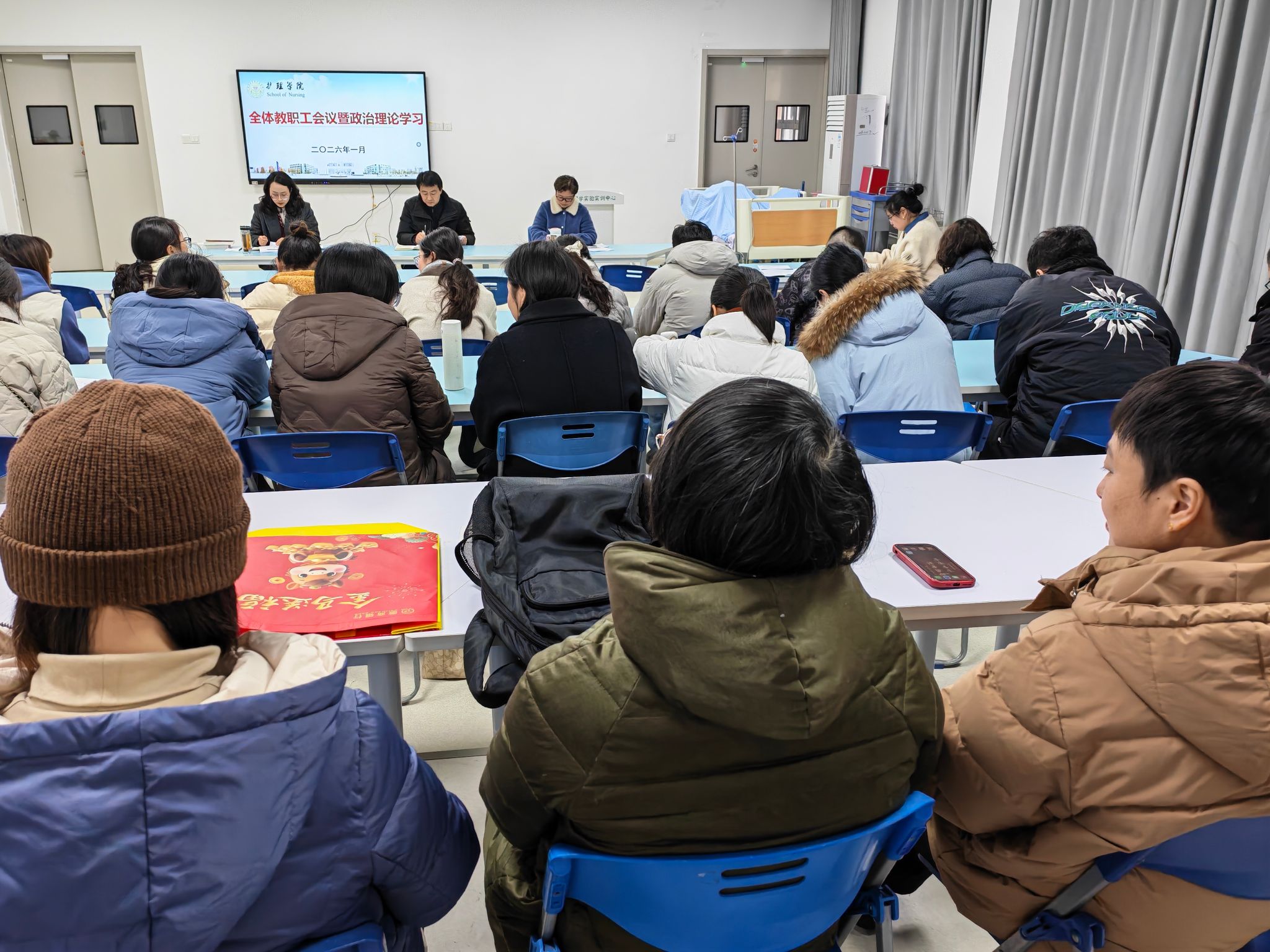 1月29日下午,护理学院在1118智慧教室召开教职工理论学习会。会议由护理学院党委副书记王亚娟主持。