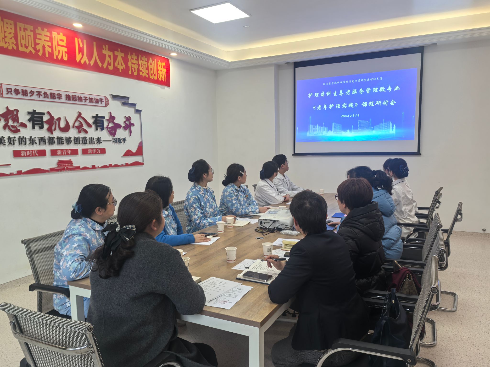 为加强老年护理服务与管理辅修实习管理和养老服务管理微专业建设,提升辅修教学质量,促进医教协同育人,3月2日,护理学院副院长崔慧霞、护理学教研室主任王和平等一行人赴芜湖蕾娜范海螺颐养院开展养老服务管理微专业课程建设研讨会。